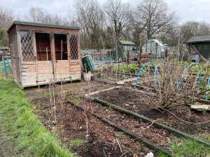 Took the kids to visit the new allotment (14b) today. We were notified last week that Storm Isha had taken the roof off the shed, and were expecting to find an apocalyptic scene in the Paddock allotments.