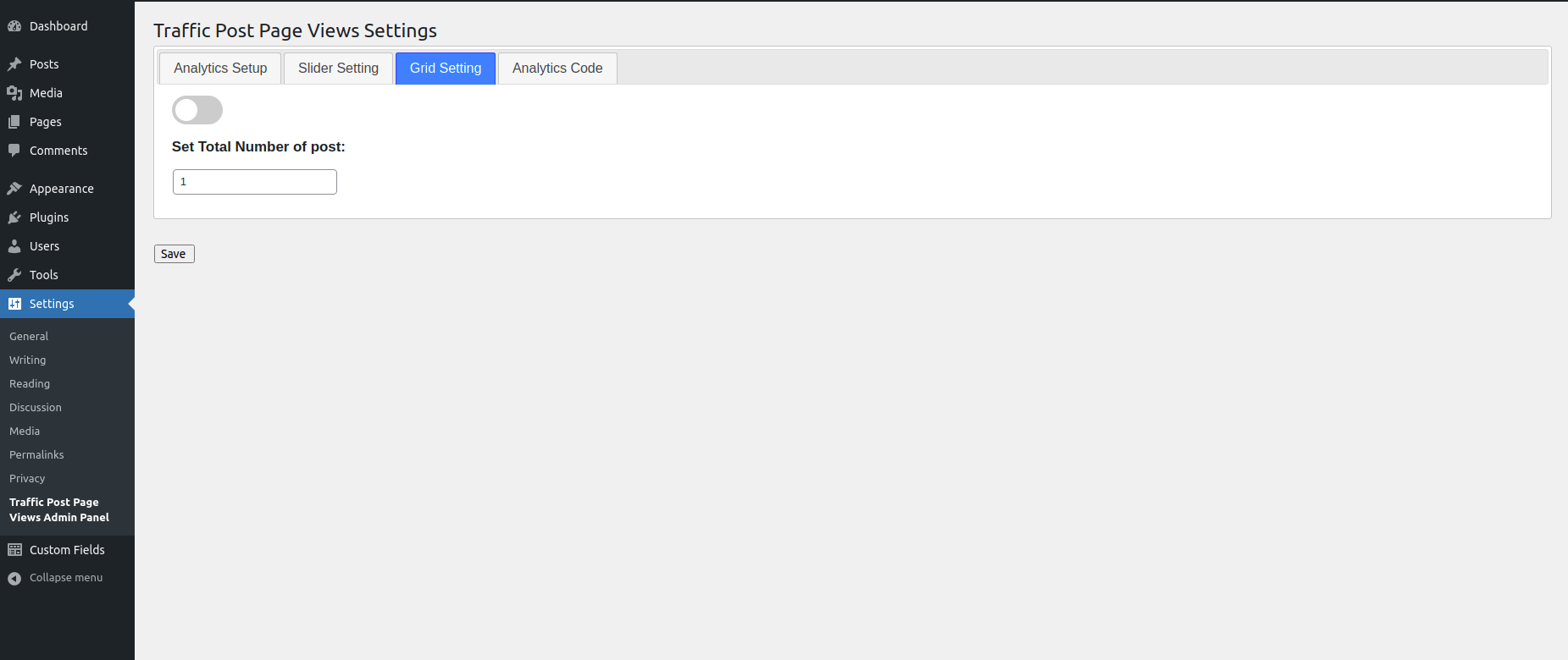 Paso 3: Configúralo desde el nuevo submenú Ajustes de Post Pageviews.