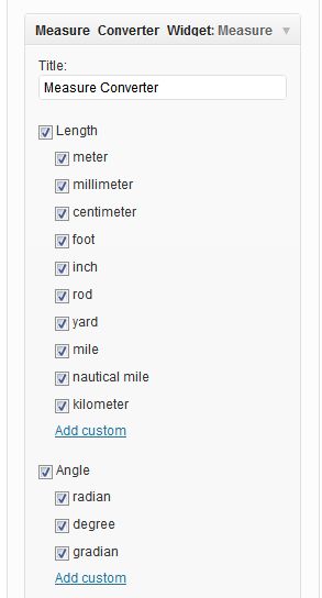 - Go to Widgets; You’ll see a new widget called ‘Measure Converter Widget’. Drag and Drop it in the sidebar.