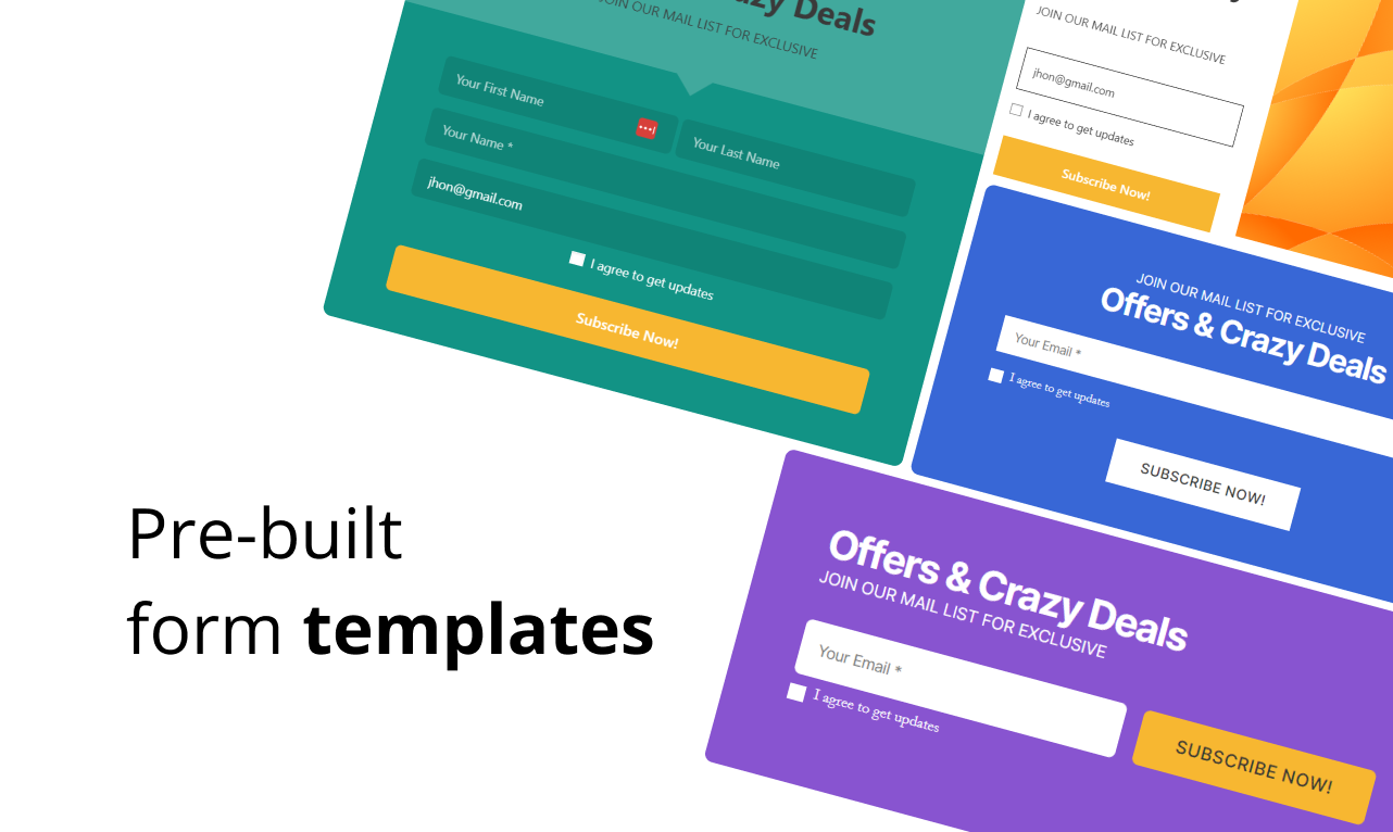 - 5 pre-built form templates – choose any of our tailor-made form templates to ensure a fantastic experience for your website visitors. More cool templates are currently under development.