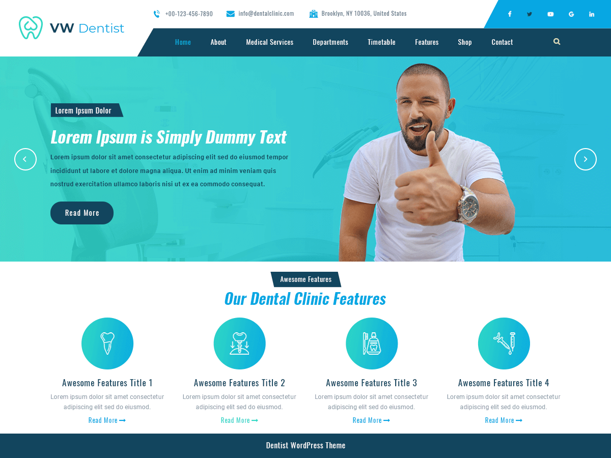 VW Dentist is specifically designed for dentists, dental hygienists, medicine, pharmacy, health care, hospital, surgeon website, nursing home, general clinics, gynaecology, veterinary clinics, endodontic, health clinics, community health centers, medical stores, dental hygiene, Tooth Sensors, MTG Dental Camera, dental implants, dental bleaching kits and scaling tools, biodegradable toothbrushes, root canal, sugar free, dental health services, drug stores, medical facilities, pediatric and overall medial websites, doctors, dental clinic, oral care, dentist office, dental hygiene, tooth care, surgeons, Finishing & Polishing, Glass Ionomer Restoratives, Curing Lights, Tootbrush retail gynaecologist, Adhesives, Cements, Impression Materials, Composites, general therapist orthodontists, doctor, hospitals, medical research facilities, medical institution medical sector people, oral health care providers dental clinics as well as providers of oral health. It is also perfect fit for any medical as well as health organization. One of the special features of VW Dentist is that it is accompanied with the mobile ready design that is responsive to the core and is based on the Bootstrap 4 technology. Due to responsive nature, it works well on the screens of different dimensions. This theme comprises of targeted features having high functionality and all these features are for the medical and dental practices. One of the important specialities with VW Dentist is a very strong theme options, sticky post, Editor Style, Custom Colors, Featured Images, panel apart from an additional page as well as post-meta options. With the later, it becomes quite easy to customize various theme aspects and you can do all this with just some clicks. There is no requirement of coding skill. This theme is translation ready. You can easily drag and drop widgets as per your requirement. If you are just starting a dental clinic, VW Dentist is something you must go for and in case you check its demo, you will find this theme with a latest design and above all, entire feature list is quite impressive. Demo: https://demos.buywptemplates.com/dentist-pro/