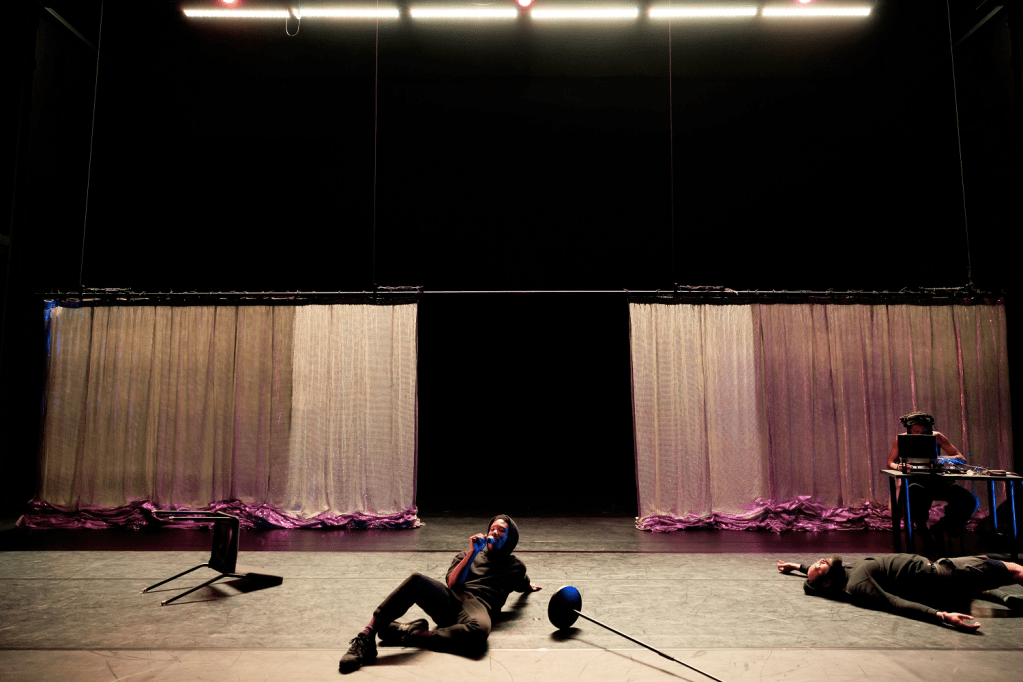 It all starts with the light shone on us, so dim and yet so bright that it’s hard to see past it, see the stage engulfed in darkness––doesn’t that resonate?––see the performers, the elements around that compose the scene. One can discern a person sitting on the stage right, another one at a table on the stage left, yet another one on a chair towards the center, and a final one at dead center, past the light, standing up, facing us. Watching us with the light. Watching us watch, or trying to watch. Who watches the watcher controls the description. Who watches the watcher holds the potential of the situation. For better or for worse. They command the space and can stir the fluid of our attention. It can be sincere, it could be a ruse. Perhaps a bit of both. And the most important part is, somehow, the sincerity with which manipulation is used or abused. Because every story is moving, or so it should, if it wants to perform its magic.