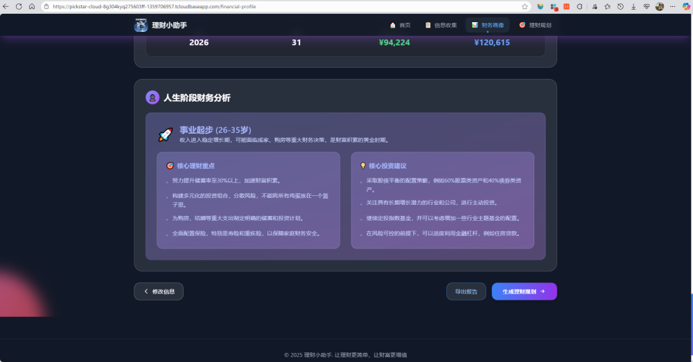目标: 基于用户信息生成专业的财务画像报告