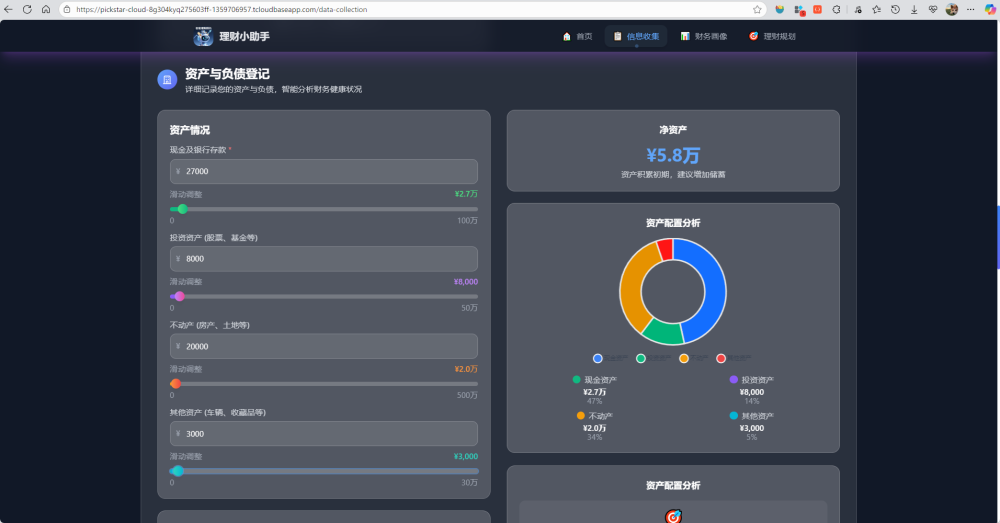 一个基于Vue 3和腾讯云开发的智能个人理财规划应用,帮助用户进行财务分析、资产配置和理财规划。