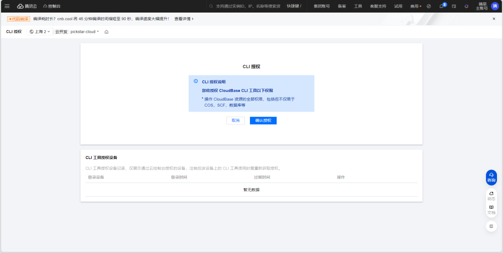 然后进入到腾讯云确认授权界面