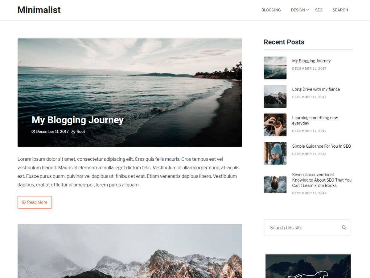 It’s a professionally designed minimal wordpress theme for bloggers, writers & content marketers. If you are looking for a WordPress theme which is designed to offer excellent readability, at the same time is mobile responsive and SEO friendly, then you should give a try to Clean Blogging. The design is simple, and at the same, it looks great on mobile devices. On the front page, it loads latest posts along with featured images. It is suggested to use “Ajax Thumbnail Rebuild” plugin to regenerate the pictures in an appropriate size, as required by this theme. The photos will be used as the background, and the post title along with the post meta information will be displayed on it. Clean blogging theme also comes with a customized recent post widget which allows you to show thumbnails along with the post title. In case thumbnail is not available, it will show a default icon. The size of the sidebar is higher than 300px. It means you can quickly monetize your website by displaying standard Adsense advertisements or banner ads. To keep the design clean, it doesn’t support any footer widget. In order to keep your website fast, it comes with a custom icon-pack. This icon pack is lightweight and is loaded with all font icons required by this theme to look great and function properly on mobile devices. Overall, its a fast wordpress theme that looks great on all devices and it is designed to offer best readability experience to your website visitors.