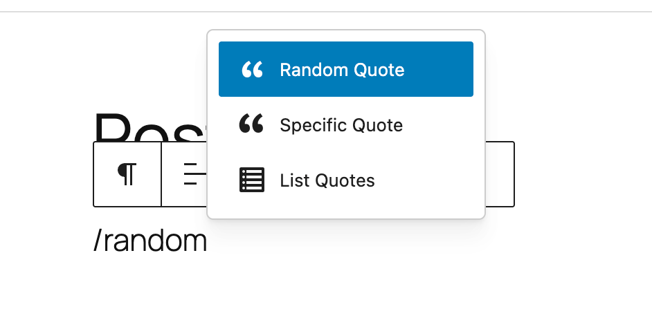 4. Choose from: Random Quote, Specific Quote, or List Quotes blocks