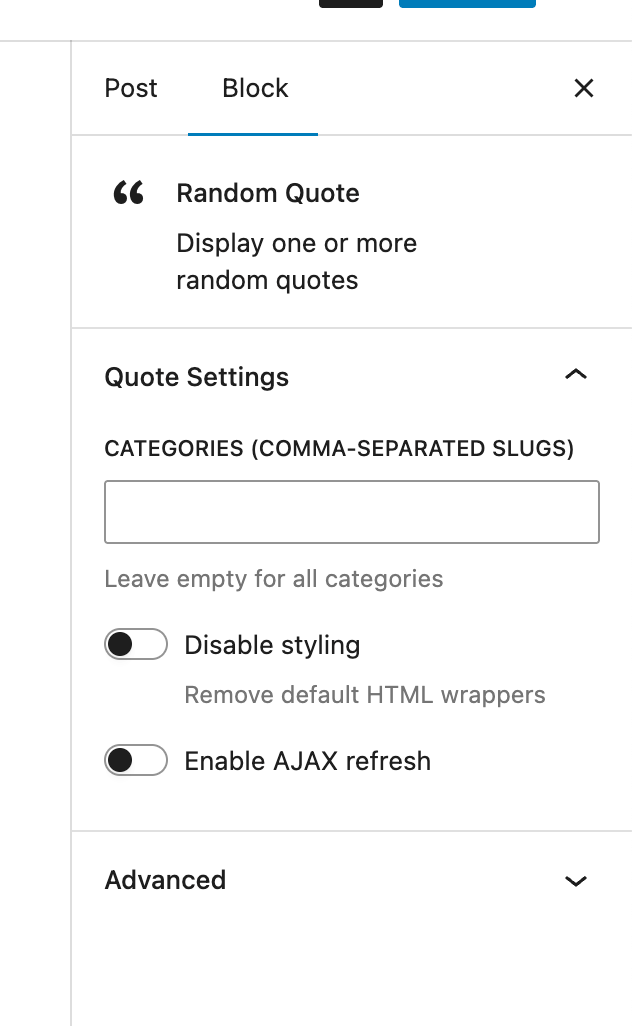 • Random Quote block in the editor