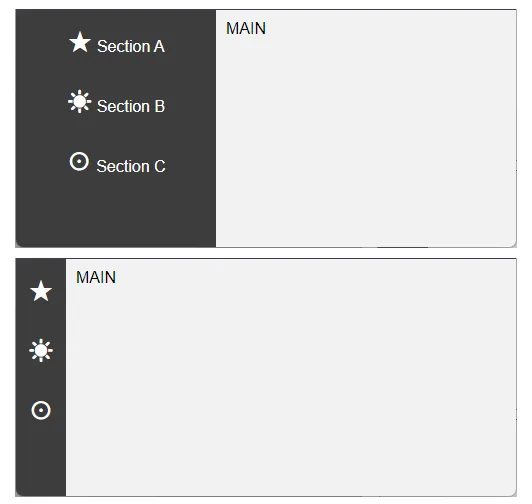 <div id="side">The sidebar, but take note, we have menu items this time.<i class="ico">Menu item icon. This is just an HTML symbol, feel free to use any “icon library” in your project.<i class="txt">Menu item text.