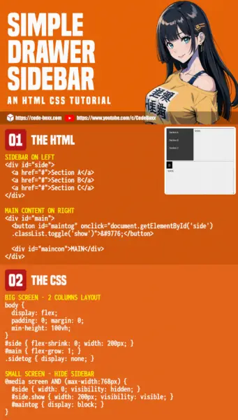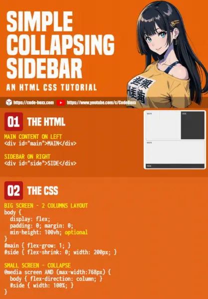 Welcome to a tutorial on creating a responsive sidebar in HTML and CSS. So you are working with a layout that has a sidebar, and wonder “how to turn it into a responsive website”? Here are a few simple examples, read on!