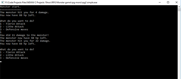 This simple RPG (role-playing game) is designed in object oriented programming language – C++. It determines all basic commands, functions, syntax, structures. Game starts randomly; whether the first attack can be from the user or the monster.User has to check the damage and hp in order to attack back and defeat the monster.There is no such graphics used in the game just some basic codes and commands are used for the development. This is a mini project for the beginners and the source code of this game is simple to understand and easy to operate by the users.