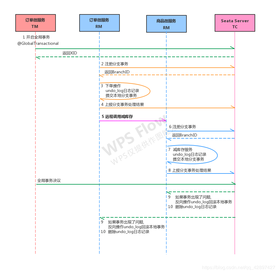 Seata的执行流程如下: