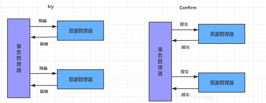 则认为 Confirm阶段是不会出错的。即:只要Try成功,Confirm一定成功。若Confirm阶段真的