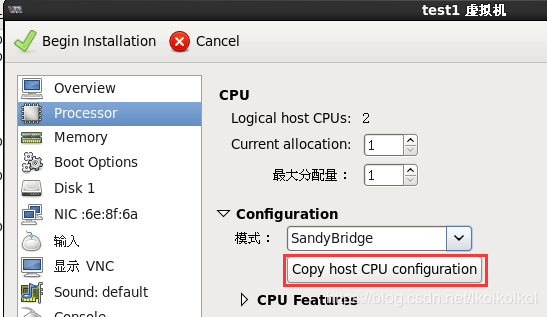 要考虑CPU数量问题,所有guestcpu总数不能超过物理机CPU总数,建议选择复制主机CPU配置