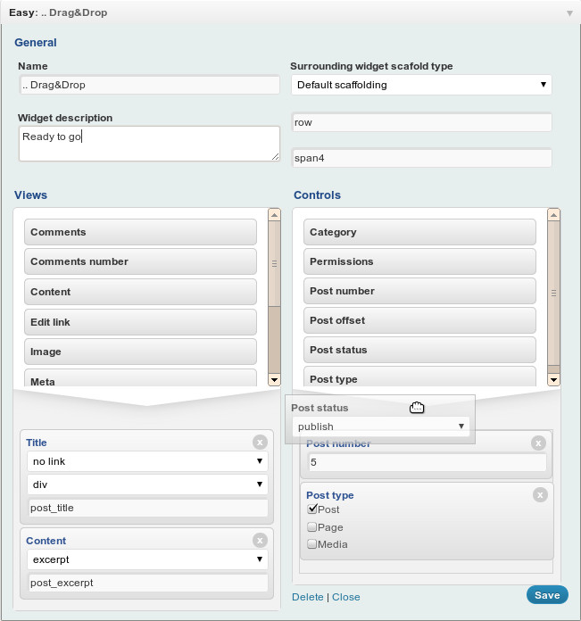 • NEW – CONTROL brick – Taxonomy matcher – it gets terms from the main post/page and adjusts the Easy widget query according to it. You can show post on the side that are in the same category as the actual post ..or something like that.
