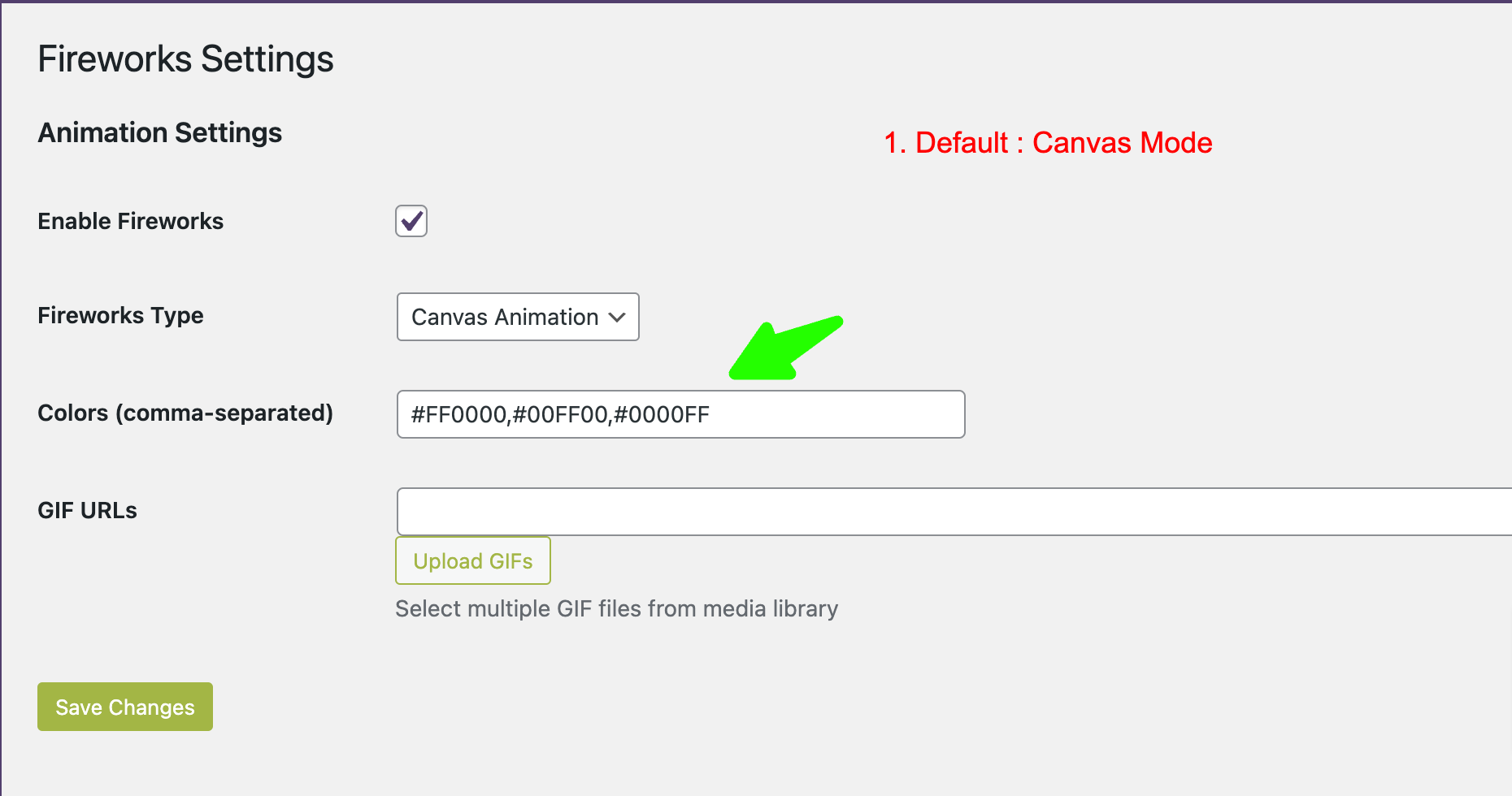 - Choose between GIF Fireworks or Canvas Fireworks.