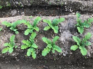 (右)ずらして植えたミズナ