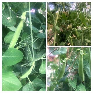 保育園から帰ってきた孫と スナップエンドウ収穫