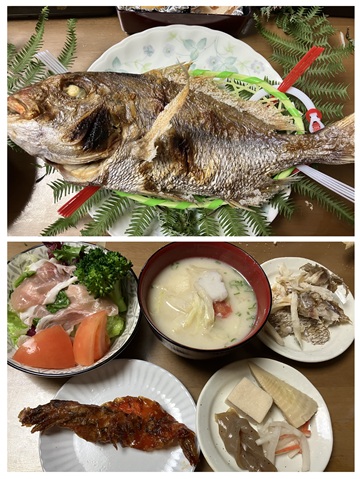 焼いた鯛1尾 4人で分けて食べました