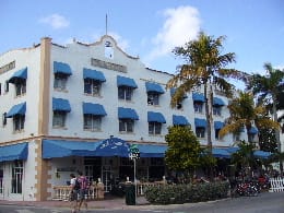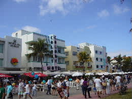 <オーシャンドライブ散策>ランチのあとは、アールデコ地区を散策しようと、まずはオーシャンドライブをぶらぶらと散歩し始めた。今日も休日なので、オーシャンドライブ沿いのレストランの張り出し席では、昼から、大きなカクテルグラスを傾ける人たちであふれていた。陽ざしも明るく、まさに「ここはマイアミだぜ。」といった感じだった。