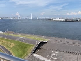 <鏡割り>14時半から、出港前の恒例行事「鏡割り」を見にグランプラザと呼ばれる、船の入り口アトリウムへ。今回用意されていた樽は、茨城の酒造メーカーの「来福」だった。いつもそうなのか、今回ひたちなかに寄港するからなのかは不明。クルーズディレクターのお二人(日本人クルーズディレクターさんは前回と同じ美しい女性、コロナの時も頑張っていらっしゃった方で、すっかりダイヤモンドプリンセスの顔となられている感あり)が進行。樽が割られ、プリンセスクルーズのロゴ入りのガラスのおちょこ(ちっちゃいグラス)に入った日本酒が振舞われた。