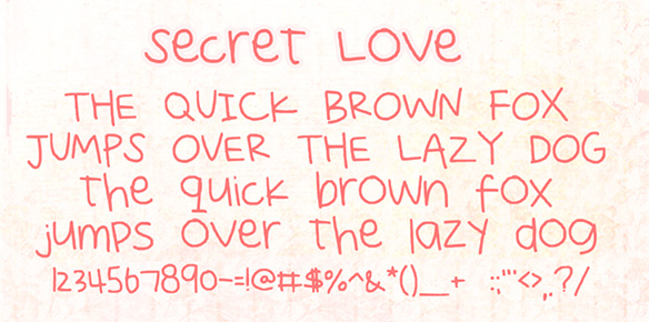 ♥らくがきフォント第2弾。マーカで書いた感じの手書き感が可愛いです(これも文字によっては♥がでてこないことも…)。