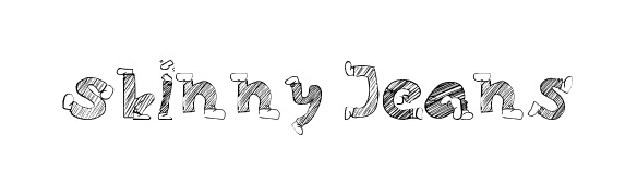 ジーンズをはいた足のらくがきがフォントになっています。個性的で面白いですね。スケッチ調でコミカルな印象です。