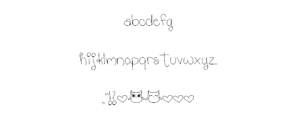 ♥らくがきフォント第3弾。白抜き文字で、ところどころに♥がアクセントになっていて可愛らしいフォントです。
