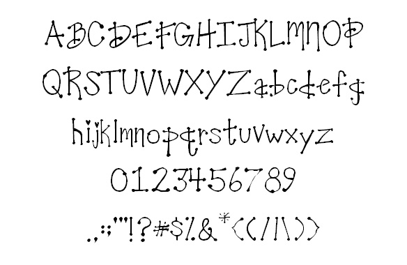 今回のテーマ「らくがき」と呼ぶにふさわしいようなフォント。特に小文字が色んなスタイルで書かれていてかわいいです。