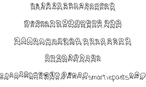 半ズボンを履いた下半身が生えたらくがきフォント。並んでいるとかなり可愛いですね。