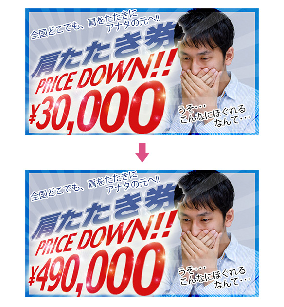 上のバナーの様に、デザインでテキストを左右非対称ないびつな形に変形することがあると思います。僕は値段の表記とかにインパクトを出す時などに結構使います。(※実際にこんな肩たたき券はありません。念のため)