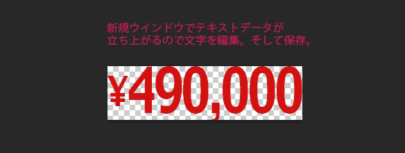 新規ファイルとしてテキストレイヤーが出るのでテキストを変更して保存してファイルを閉じてください。