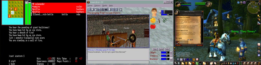Last year I wrote an extensive article on something entirely absent from the CRPG Book: MUDs and MMORPGs. While they deserve an entire book about them, it’s important to see how their evolution influences single-player RPGs.