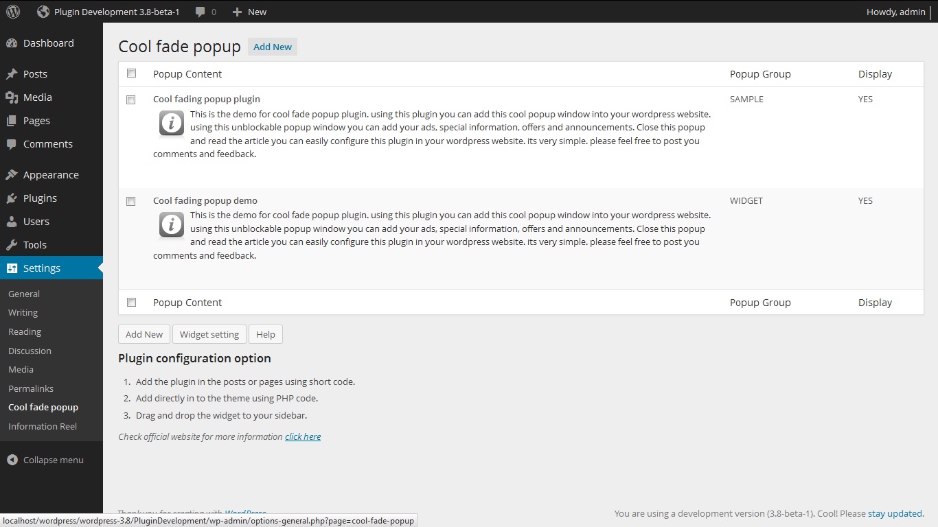 Admin screen. http://www.gopiplus.com/work/2011/01/08/cool-fade-popup/