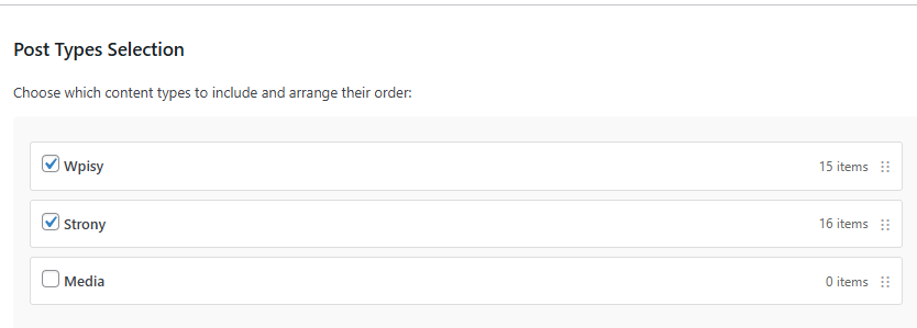 - Post type selection – Choose which post types to include (posts, pages, custom post types)