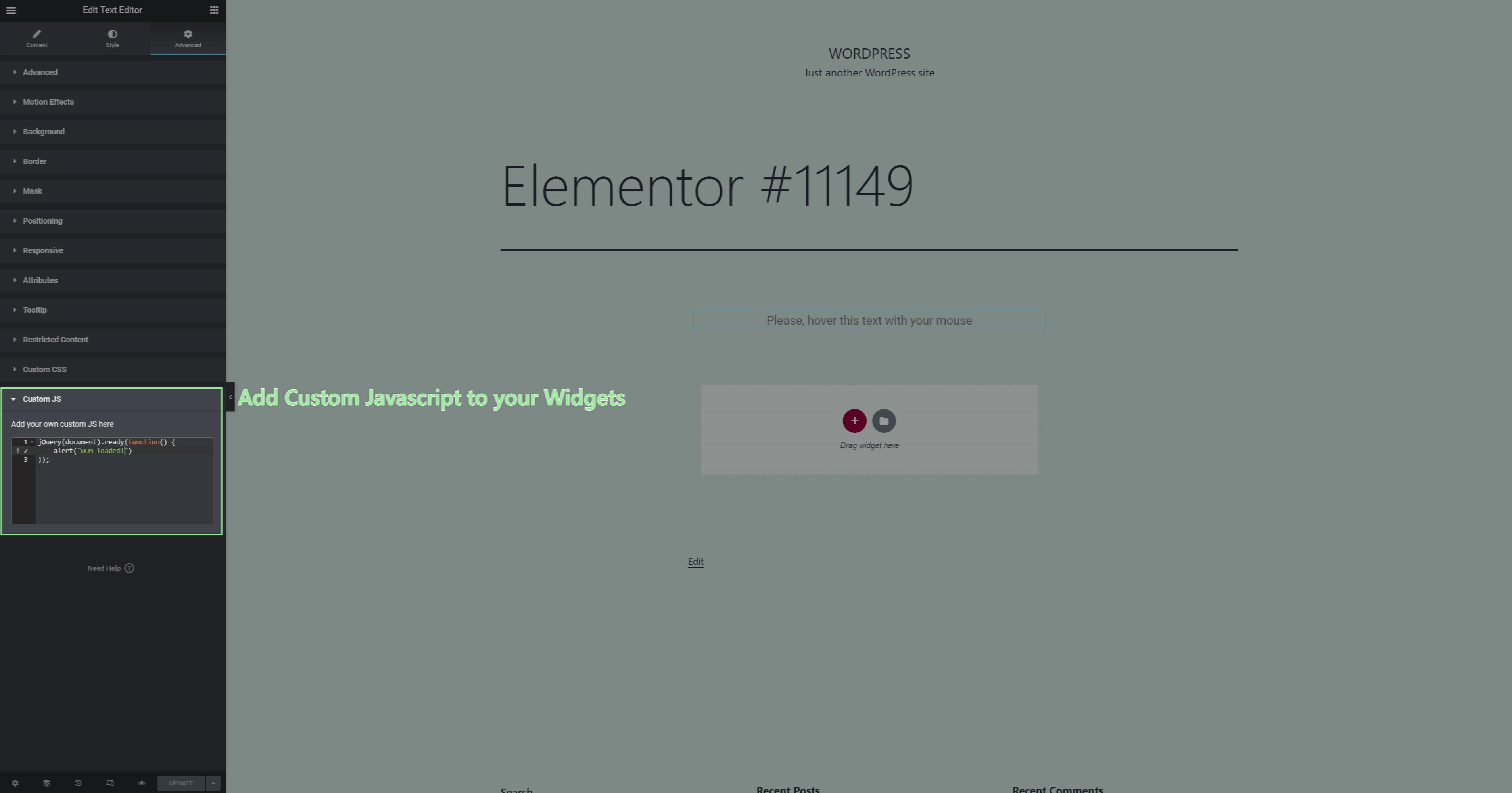 inline Custom JS for Widgets in the Advanced Tab implemented