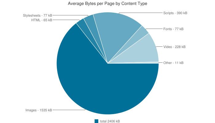 The average webpage is a whopping 2406kb of which 1535kb are images. With images taking up such a big part of the average website, it is also one of the best targets for performance wins.