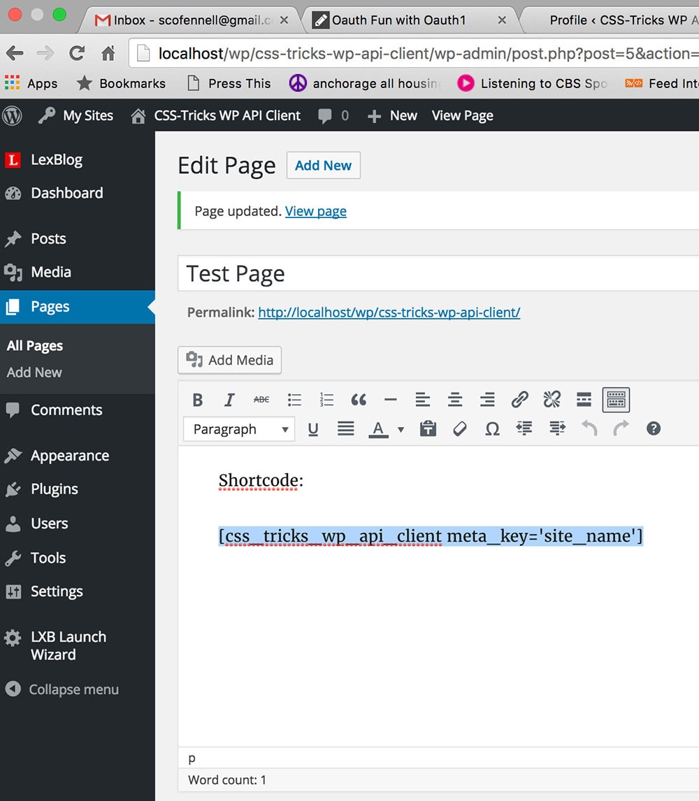 Now we’ll switch to the client install, which is the first time we’ve done so thus far in the series. My client install happens to be my local MAMP. Just a reminder, indeed the whole purpose of this article: In production, you might have many, many client installs. In real life I have like 30, but for this demo I’m just using my local MAMP.