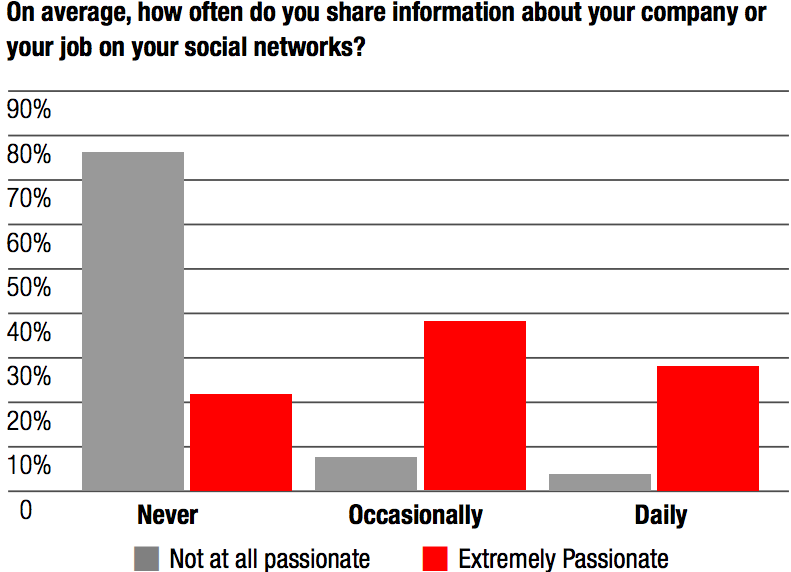 Periodically poll your employees to assess their level of passion for the company and their role. This insight will help you craft company vision training and incentive programs that drive greater advocacy.