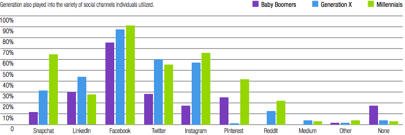 We sought to understand if there was a correlation between age and blog authorship when assessing social media engagement. Almost a quarter of our survey respondents have a personal blog. While far fewer Baby Boomers have a blog, Generation X and Millennials were neck and neck.