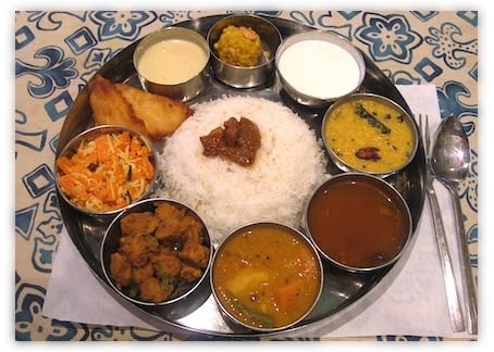楽しみにしていると、ミールスが運ばれてきました。