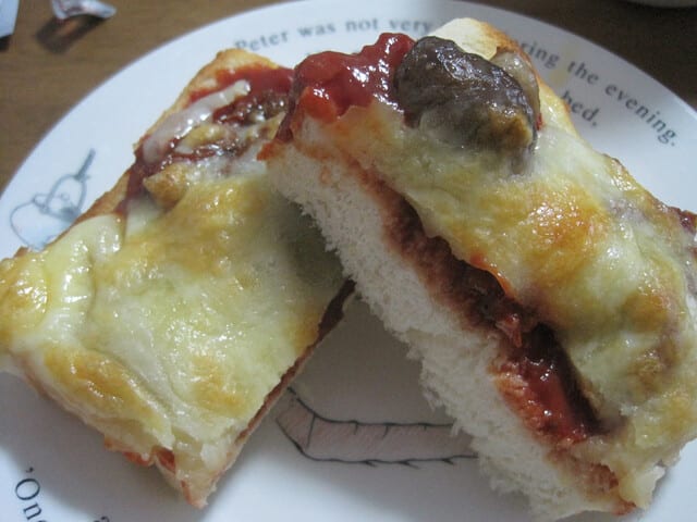 そして~別の日は🍕ピザトースト🧀アヒージョの残り(マッシュルーム・ベーコン)をトッピング