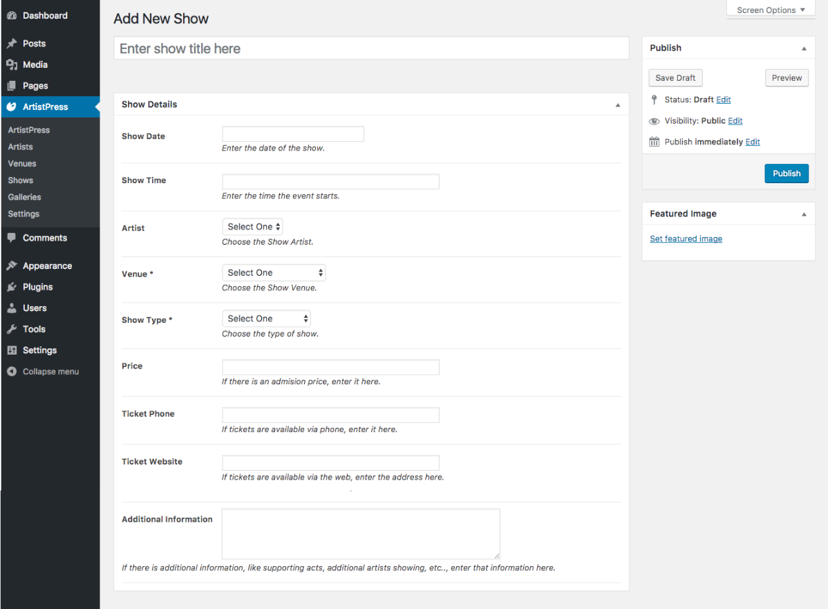 - Documentation to use ArtisPress is in the works at https://www.artistpress-plugin.com/documentation/.