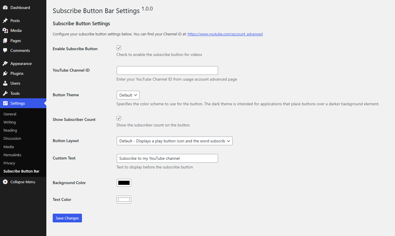 Subscribe Button Bar for YouTube Embed Videos is a robust WordPress plugin designed to seamlessly integrate YouTube subscription functionality into your website. It automatically detects YouTube videos within your content, including both embedded iframes and direct URLs, and strategically places a customizable YouTube video subscription button bar directly beneath them.