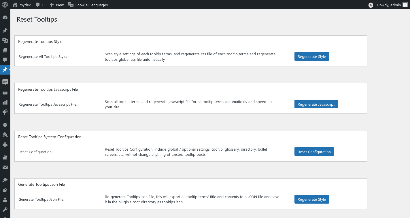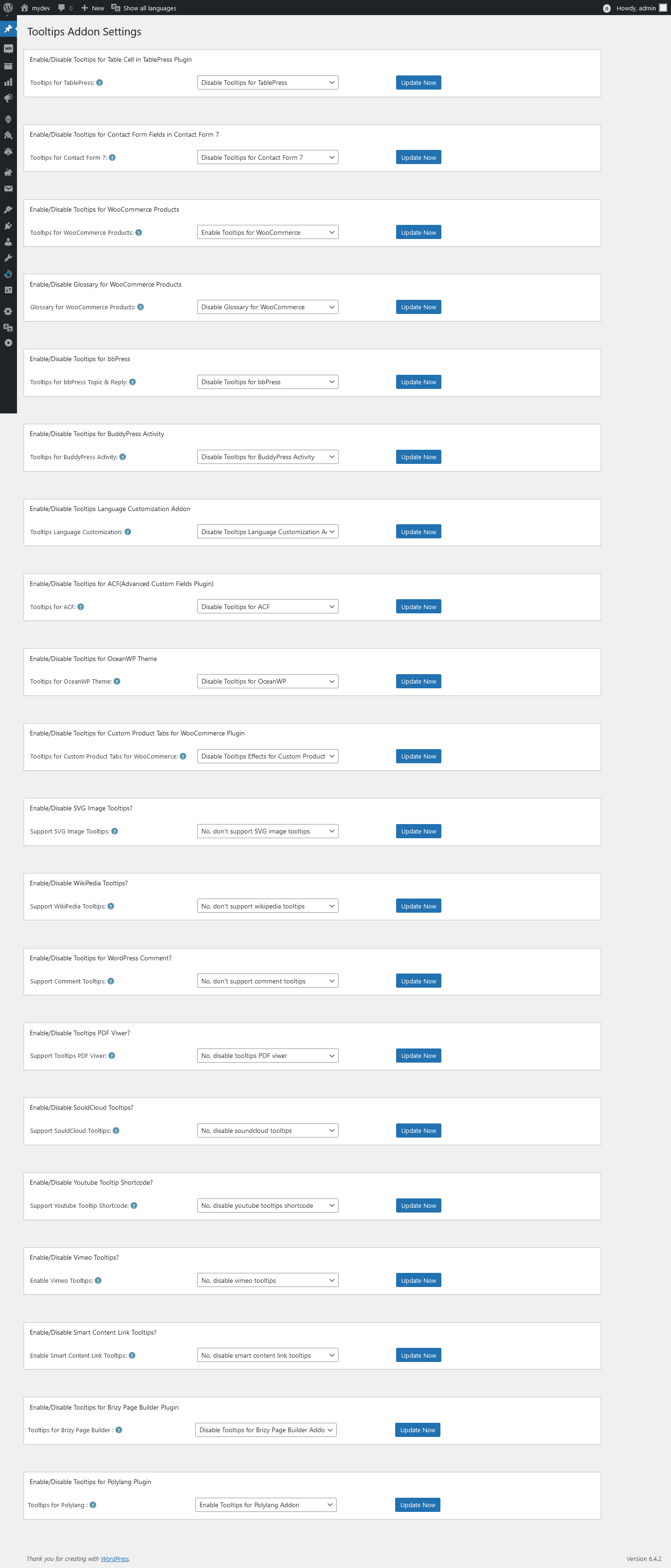 - Support for translating the Tooltips for WordPress plugin content and launching localized versions. .po files can be found in the languages folder.