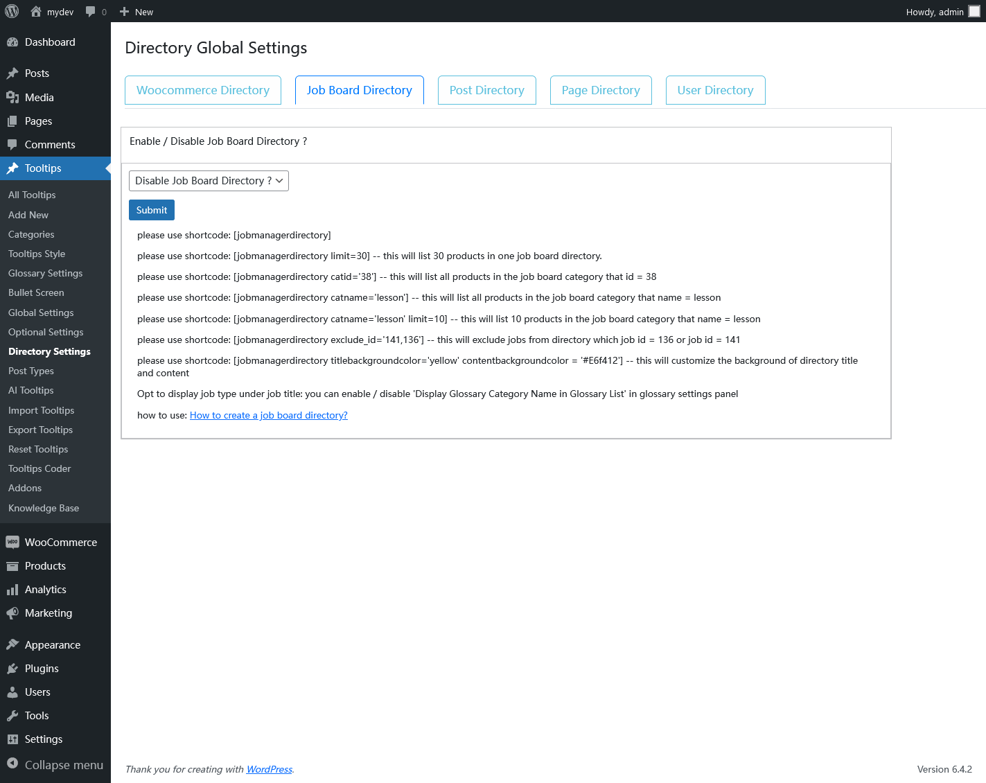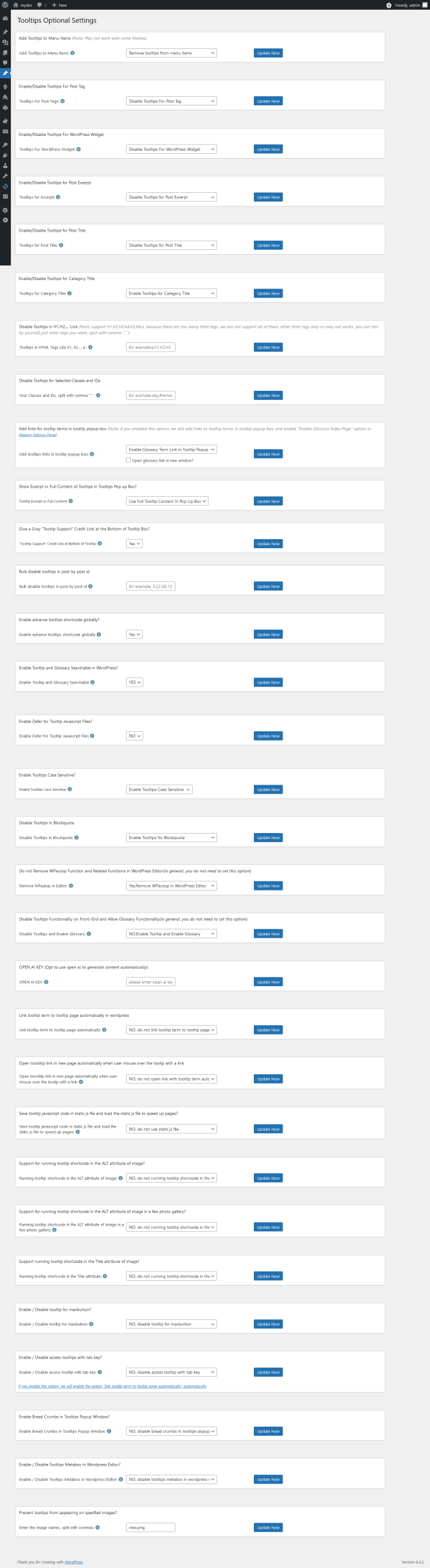 - Option to disable Tooltips for WordPress on the WordPress glossary page.
