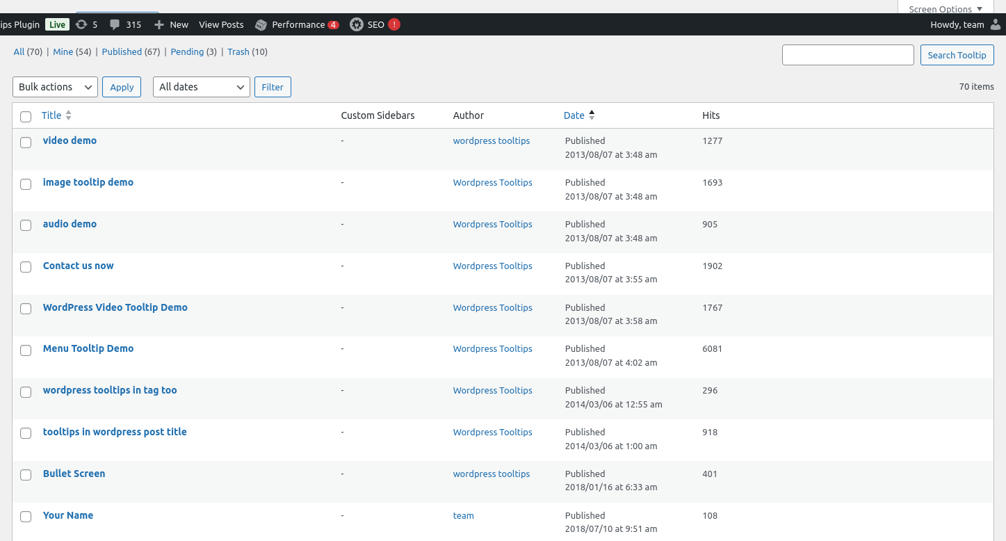 - The Tooltips for WordPress plugin will automatically add tooltip effects to posts by default. It also supports manual insertion of tooltips in posts using shortcode.