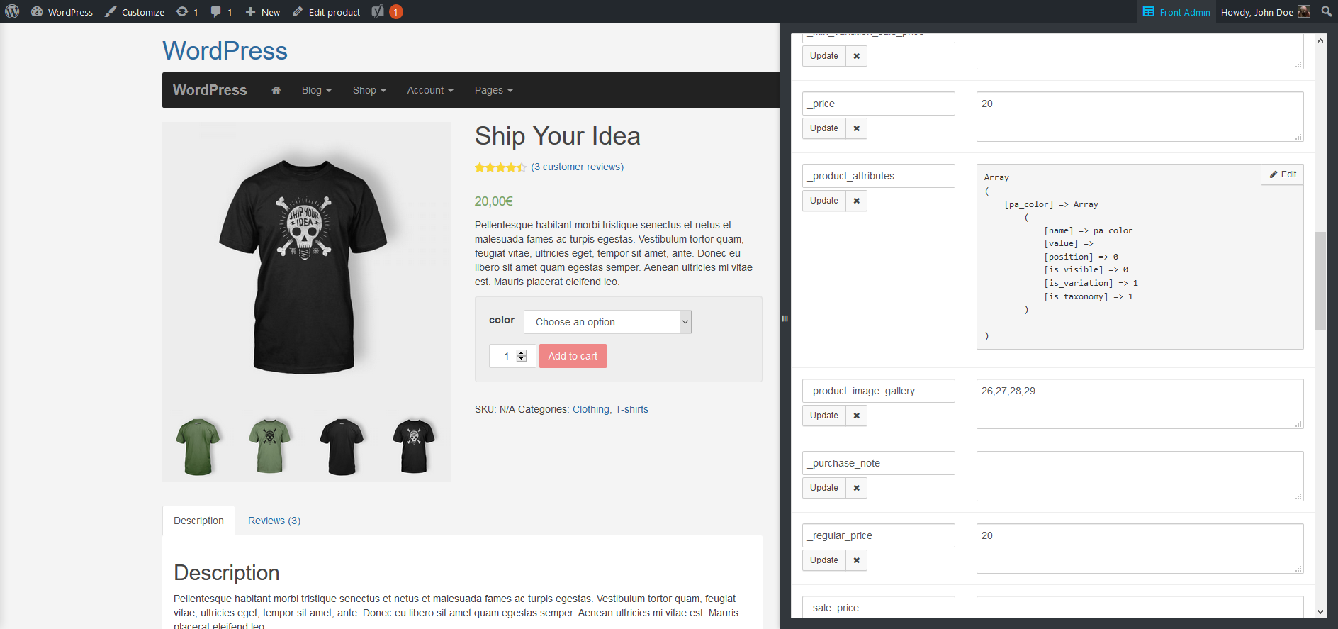 This plugin will enhance your administration experience & efficiency by adding a side panel which let you quickly Add/Update/Delete any meta data on Posts, Pages & Custom Post Types. Ever had trouble to debug or edit serialized post meta? WP Front Admin got your back. The plugin includes an awesome serialized data editor!