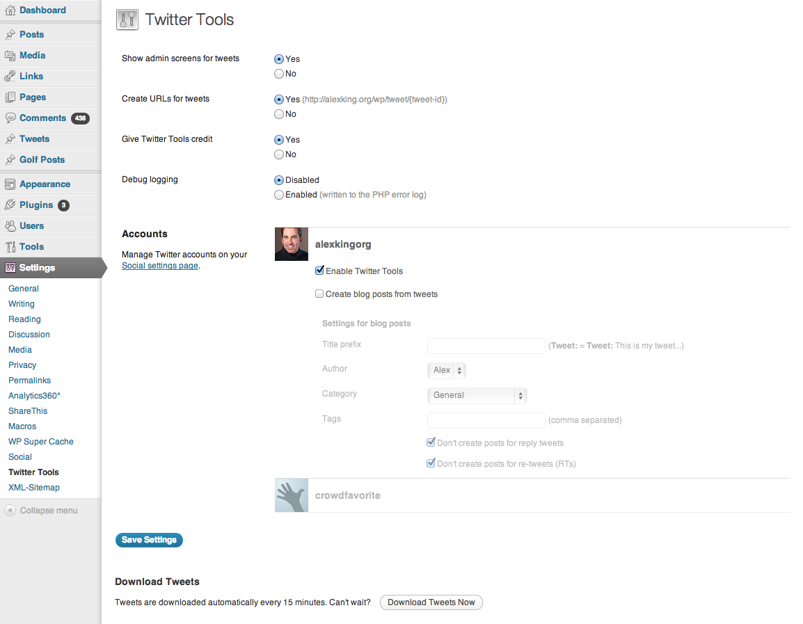 - Go to the Tools for Twitter Options page (Settings > Tools for Twitter) to set up your Twitter information and preferences.