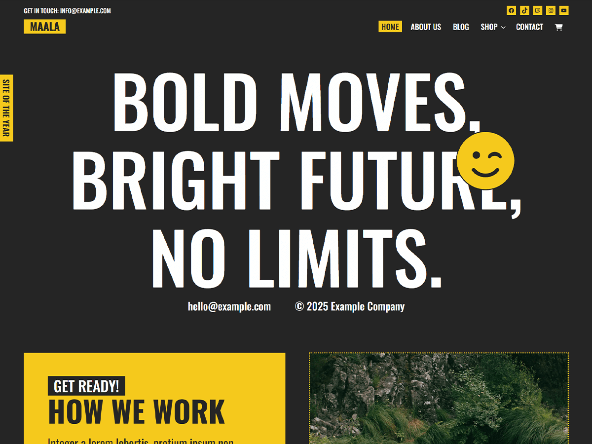 Maala is a dynamic WPKoi theme, offers a contemporary, solid, dark, black design for unique portfolio, business or agency websites. It’s a versatile multipurpose theme ideal for showcasing your art, business, event, portfolio, blog, webshop, or products. Maala seamlessly integrates the power of Elementor’s drag-and-drop page builder, WooCommerce shop module, and Contact Form 7 for effective content management. The premium demo leverages the Maala premium plugin for added features. With an intuitive admin panel, extensive customizer options, and block-based template parts, Maala empowers you to build your dream website without any coding expertise. This responsive theme ensures a flawless display on various devices, enhancing user experience. Craft your online presence with Maala and share it with the world. Comprehensive installation and styling guidance is available in our documentation at wpkoi.com/docs.